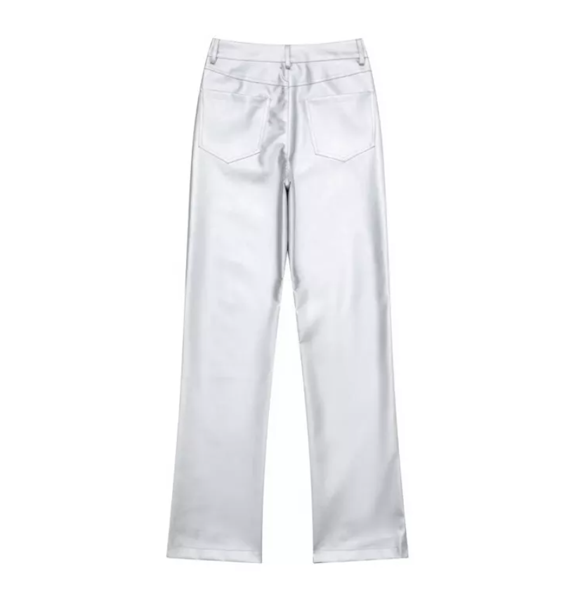 Lustra High-Waist-byxorna ger vardagen en touch av elegans och lyster. Med sin skimrande yta, höga midja och raka siluett skapar de en stilren och sofistikerad look. Det raka snittet gör att byxorna faller elegant, medan midjan framhäver figuren på ett smickrande sätt. Perfekta för både eleganta tillfällen och moderna statement-outfits som sticker ut.